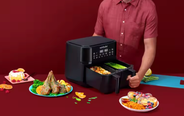 Η φριτέζα αέρα με διπλό συρτάρι nutribullet® είναι μία μοναδική επιλογή για καλά ισορροπημένα γεύματα όλων των ειδών. Με δύο συρτάρια μαγειρέματος 4 λίτρων και 8 προκαθορισμένες λειτουργίες μαγειρέματος, μπορείτε να δημιουργήσετε έναν ατελείωτο συνδυασμό πλήρων γευμάτων μέσα σε λίγα λεπτά. Ψήστε, ξεροψήστε, αφυδατώστε λαχανικά – όλα ταυτόχρονα σε διαφορετικά συρτάρια για να δημιουργήσετε το τέλειο γεύμα. Η τεχνολογία vortex convection του μειώνει το χρόνο και την ποσότητα λαδιού (και αναστάτωσης) που απαιτείται για να κάνει το φαγητό σας να έχει υπέροχη γεύση.