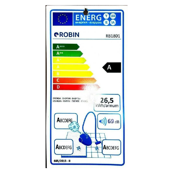 ROBIN RB-1801 ΗΛΕΚΤΡΙΚΗ ΣΚΟΥΠΑ 700W ΜΕ ΣΑΚΟΥΛΑ 3LT ΓΚΡΙ