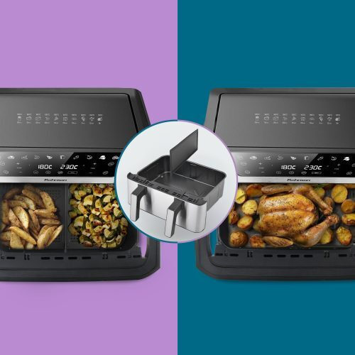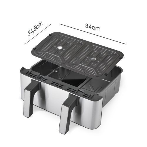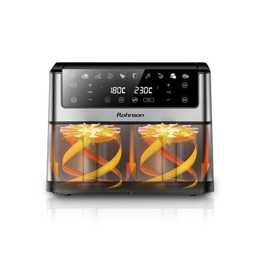 Η Dual Zone Air Fryer σου δίνει την επιλογή να μαγειρέψεις δύο διαφορετικά πιάτα ταυτόχρονα, χρησιμοποιώντας δύο ξεχωριστά καλάθια των 5.2L, ή να εκμεταλλευτείς ολόκληρη τη χωρητικότητα των 10.4L για μεγαλύτερα φαγητά. Ιδανικό για γεύματα που χρειάζονται χώρο και διαφορετικούς χρόνους μαγειρέματος.