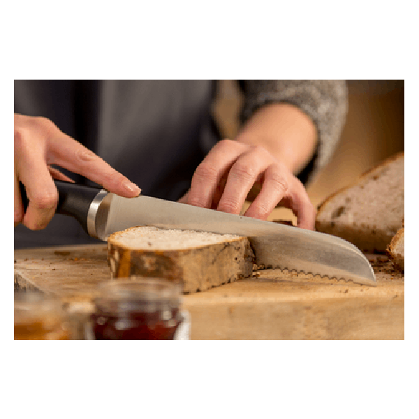 Το μαχαίρι ψωμιού διαθέτει οδοντωτή λεπίδα που το καθιστά ιδανικό τόσο για την κοπή ψωμιού, όσο και για την κοπή τροφίμων, που διαθέτουν σκληρή κρούστα και μαλακό εσωτερικό. Εκτός από την κοπή ψωμιού, μπορεί να χρησιμοποιηθεί για την κοπή φρούτων, όπως καρπούζι, ανανάς, εσπεριδοειδή, κλπ. αλλά και διαφόρων ψημένων τροφίμων, όπως μεγάλα κομμάτια κρέατος.