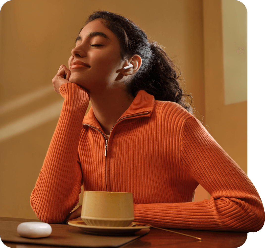 Απολαύστε ένα πιο ήσυχο περιβάλλον ακρόασης με τη λύση Hybrid ANC που μειώνει με ακρίβεια θορύβους χαμηλής συχνότητας, όπως ο κλιματισμός ή η βοή του μετρό. Με βάθος ακύρωσης που φτάνει τα 46dB, τα ακουστικά απομονώνουν αποτελεσματικά τους εξωτερικούς περισπασμούς.